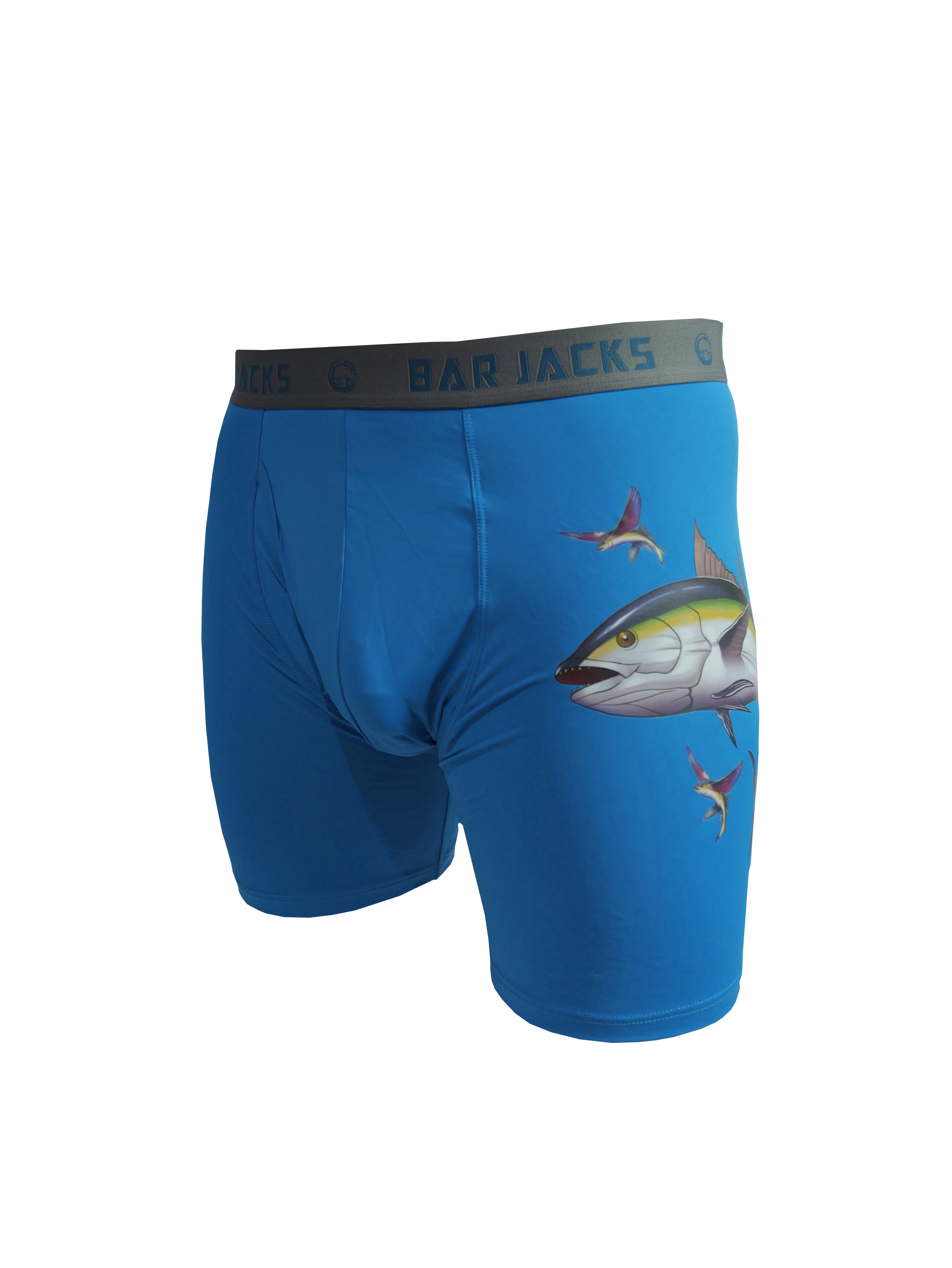 So impressed with the bar jacks! You do need a few more designs, or sailfish marlin, bonefish, tarpon, permit. Hell, even lionfish. Dry seriously quick, comfortable, and I don't get any chaffing, even wading in and out of flats. They do run a bit big so with the elastic band going two inches smaller is recommended.